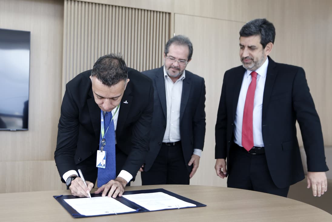 A Companhia Pernambucana de Saneamento (Compesa) recebeu, nesta segunda-feira (13), a cessão de um terreno pertencente ao Tribunal de Contas do Estado de Pernambuco (TCE-PE), localizado na Avenida Mário Melo, onde será construída uma nova e mais moderna Estação Elevatória de Esgoto que atenderá a área central do Recife. A unidade substituirá o atual equipamento que já dá sinais de incapacidade operacional, que funciona nas dependências do TCE, na Rua da Aurora, espaço que anteriormente pertencia à Compesa. O termo de cessão foi assinado durante cerimônia na sede do Tribunal, no bairro de Santo Amaro, com a presença do presidente da Compesa, Douglas Nóbrega, o presidente do Conselho de Administração da Companhia, Alex Campos, e o presidente do Tribunal de Contas do Estado de Pernambuco, Valdecir Pascoal.