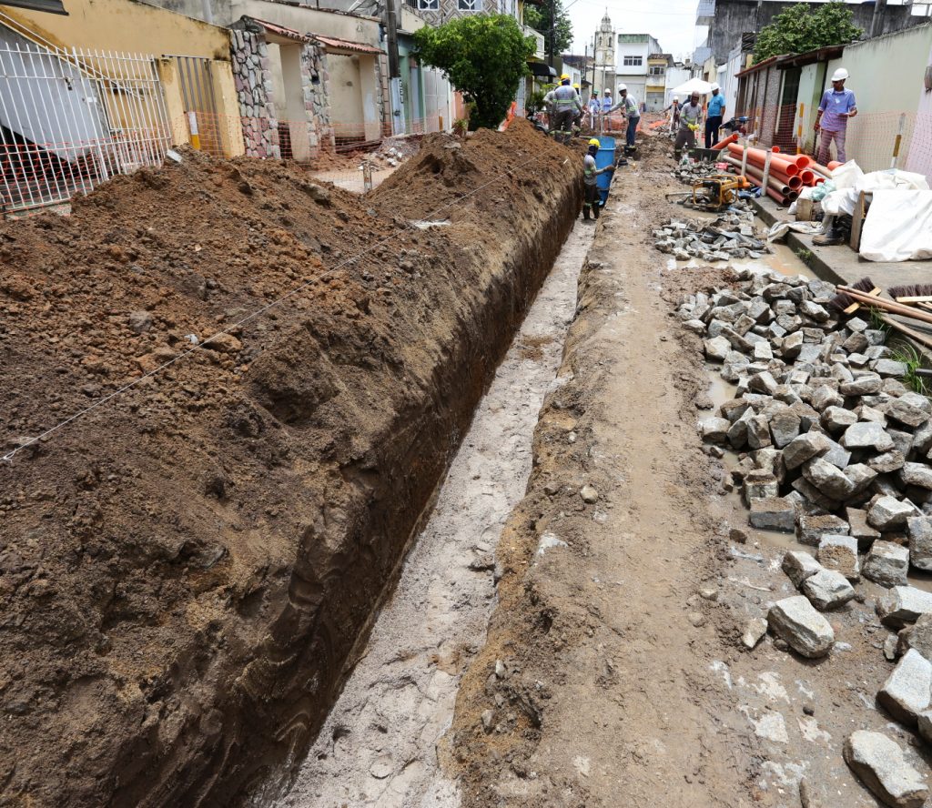 Por se tratar de uma obra executada dentro do perímetro de um sítio histórico, os serviços no Centro de Goiana são realizados com o acompanhamento integral de uma equipe de arqueólogos e técnicos, para observar toda a ação de revolvimento, remoção ou transporte de solo e também registrar qualquer ocorrência de interesse arqueológico que possa surgir, assegurando a proteção do patrimônio. Além disso, estudos arqueológicos foram realizados antes de se iniciar a obra, conforme preveem os dispositivos legais do Instituto do Patrimônio Histórico e Artístico Nacional (Iphan) que normatizam essas atividades. Todo esse cuidado é importante, tendo em vista que o Centro Histórico de Goiana apresenta potencial para descobertas de vestígios arqueológicos – essa região foi ocupada desde o século XVI por diferentes grupos étnicos, com práticas e saberes que se modificaram ao longo dos anos. Até o momento, ainda não foi identificado material arqueológico no local.
