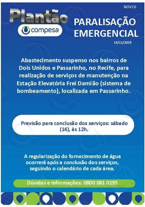 COMPESA > Plantão Compesa > PLANTÃO – 14.11.2019 – DOIS UNIDOS E PASSARINHOS